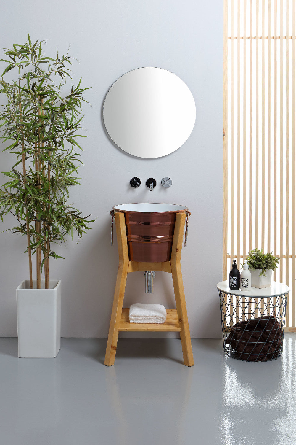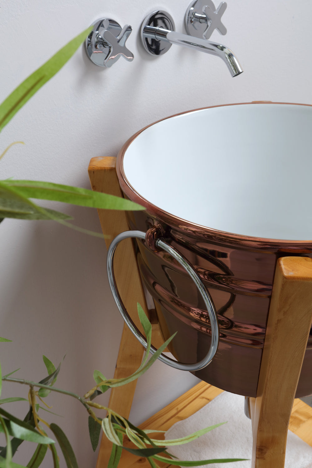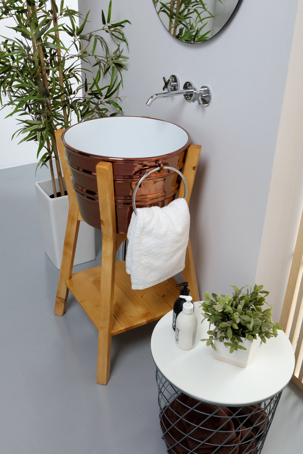 Kupferbecken-Zusammensetzung auf natürlicher Tannenstruktur