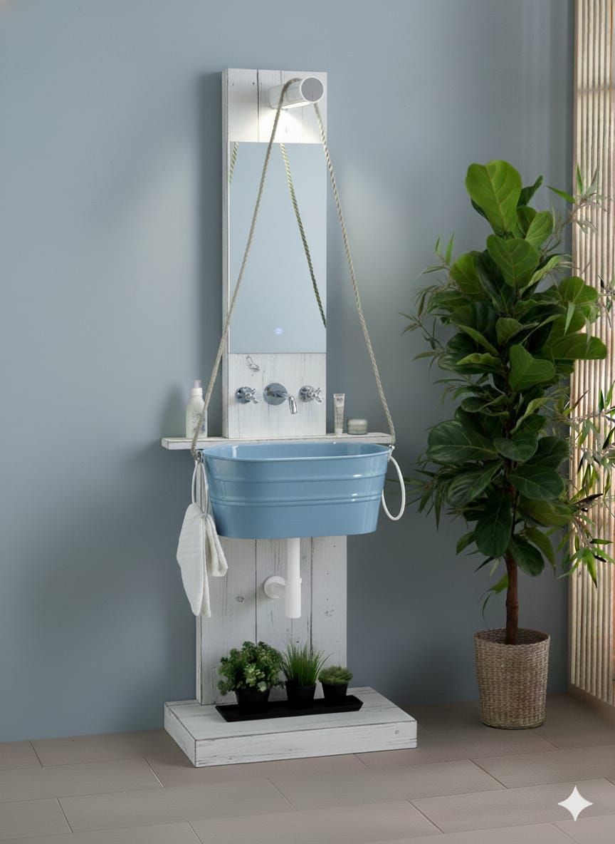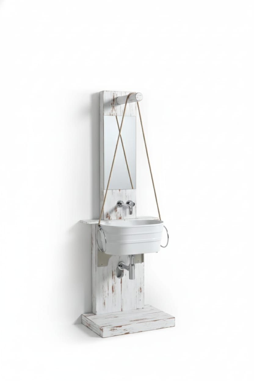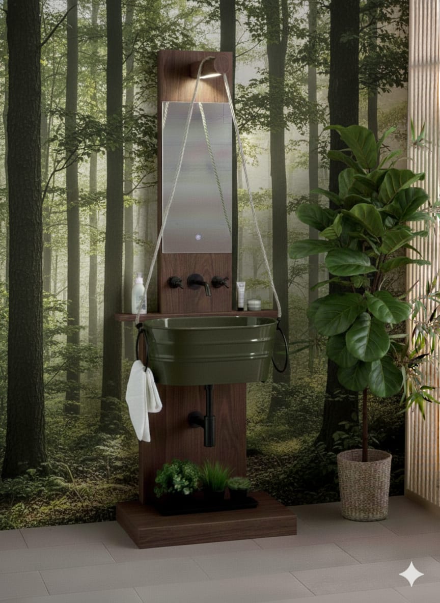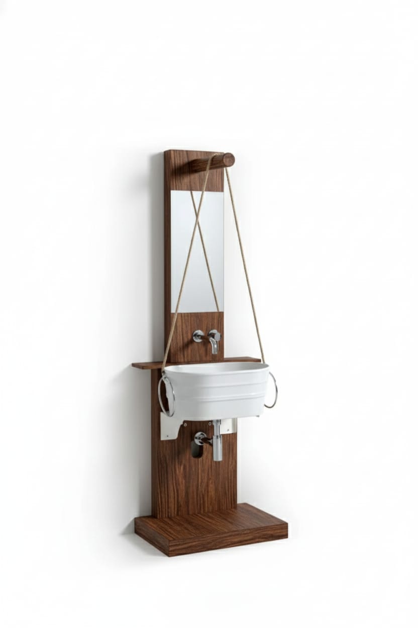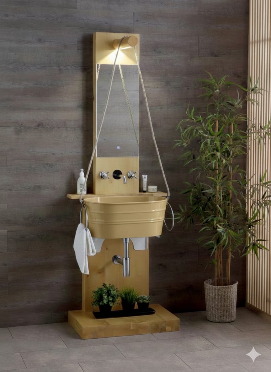 Holzstruktur, auf dem Boden, mit Spiegel mit oder ohne LED-Beleuchtung, erhältlich in 3 Ausführungen, für Tinozza-Waschbecken mit Ringen.