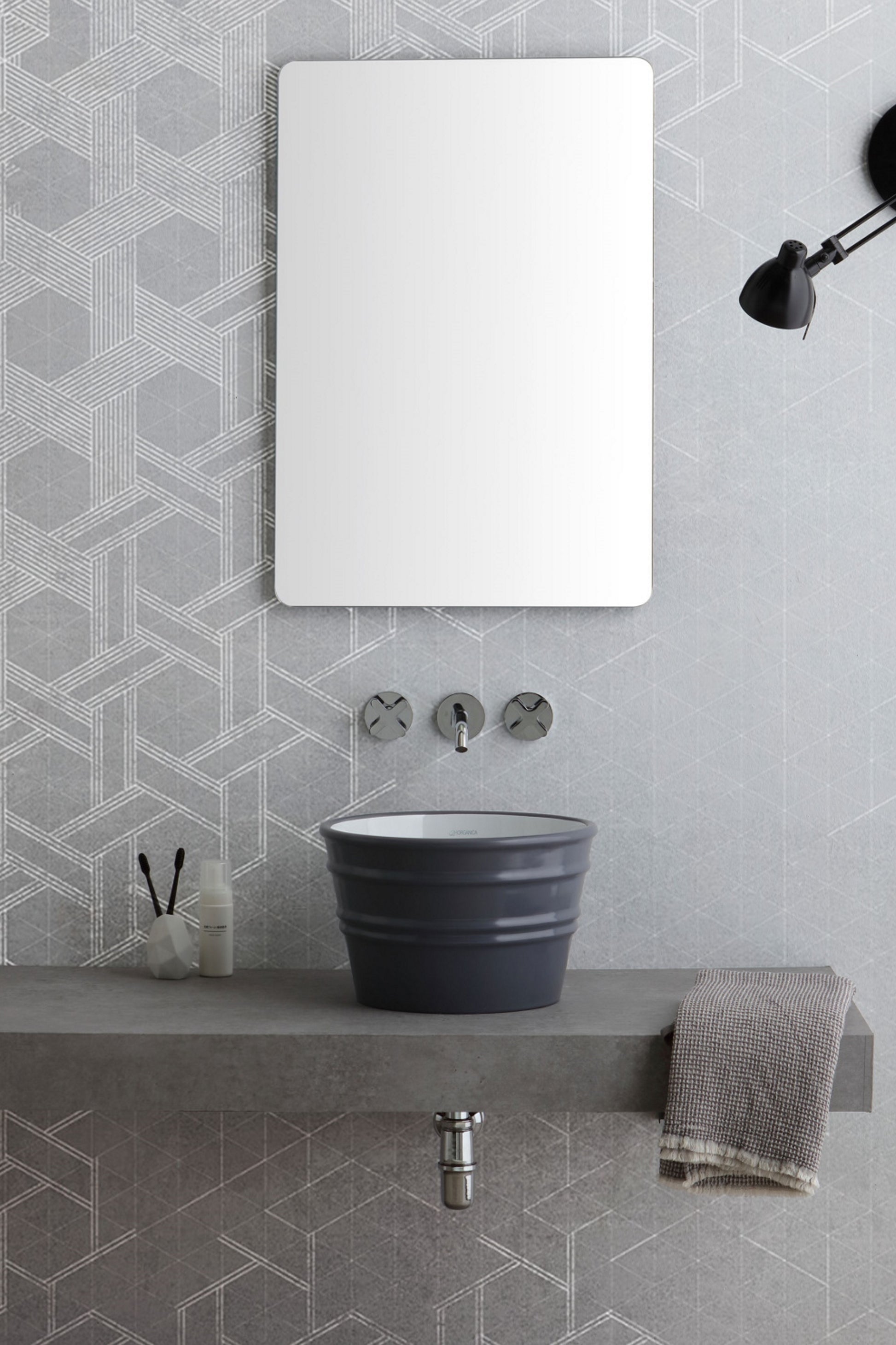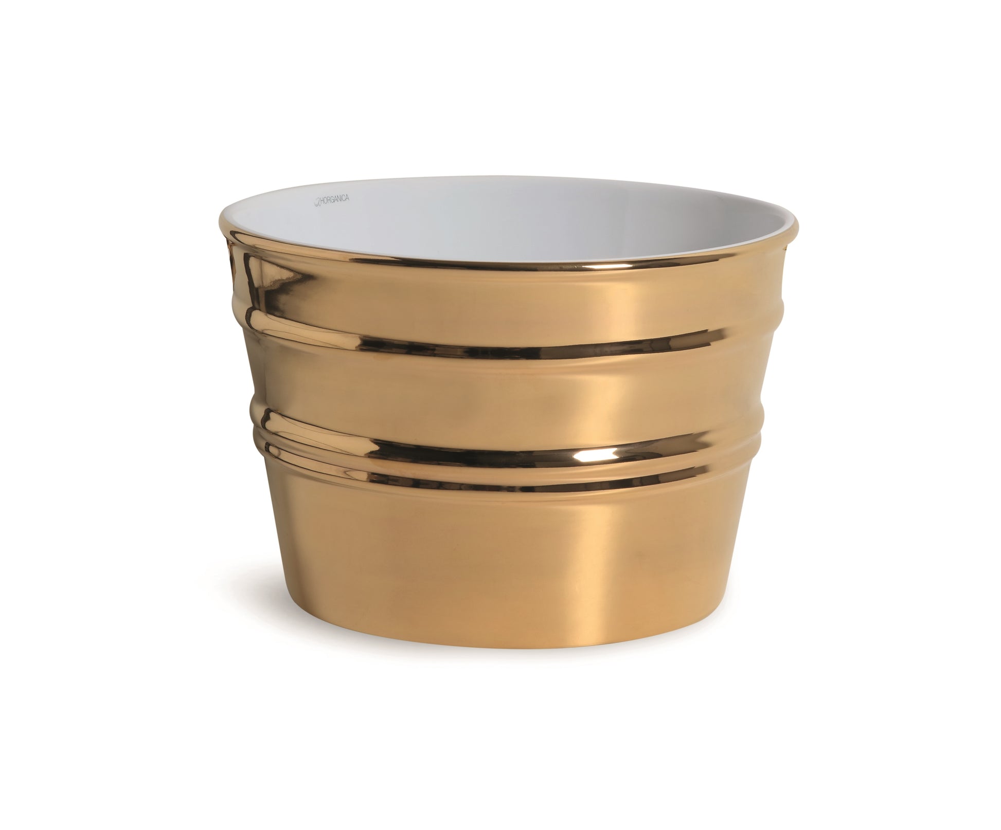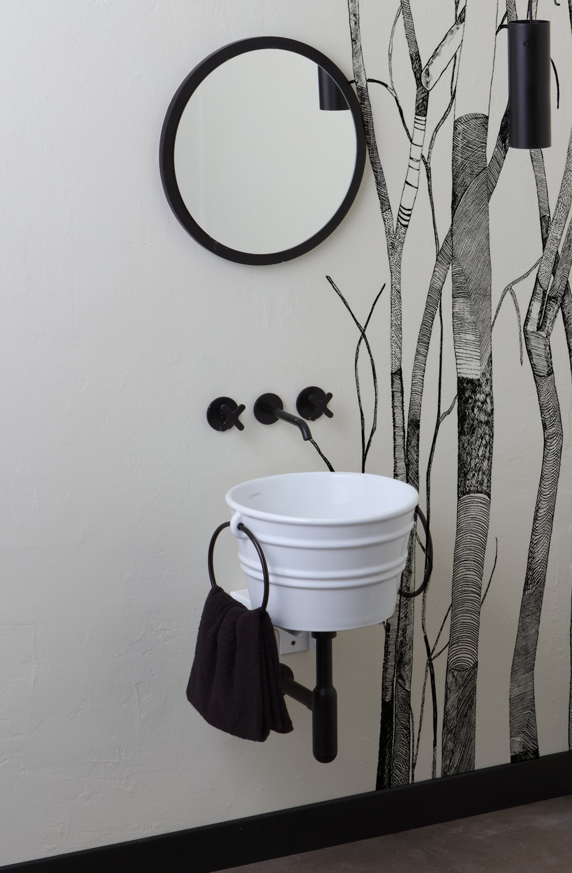 Aufsatz- oder wandhängendes Keramikwaschbecken, Außendurchmesser 38 cm x Höhe 24 cm Clip-and-Clap-Abfluss und Keramik-Abflussabdeckung nicht im Lieferumfang enthalten