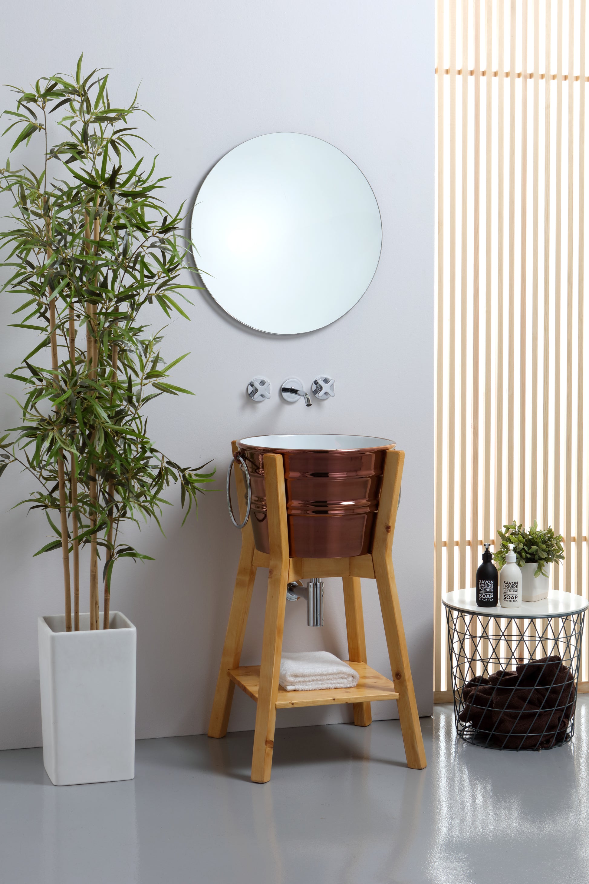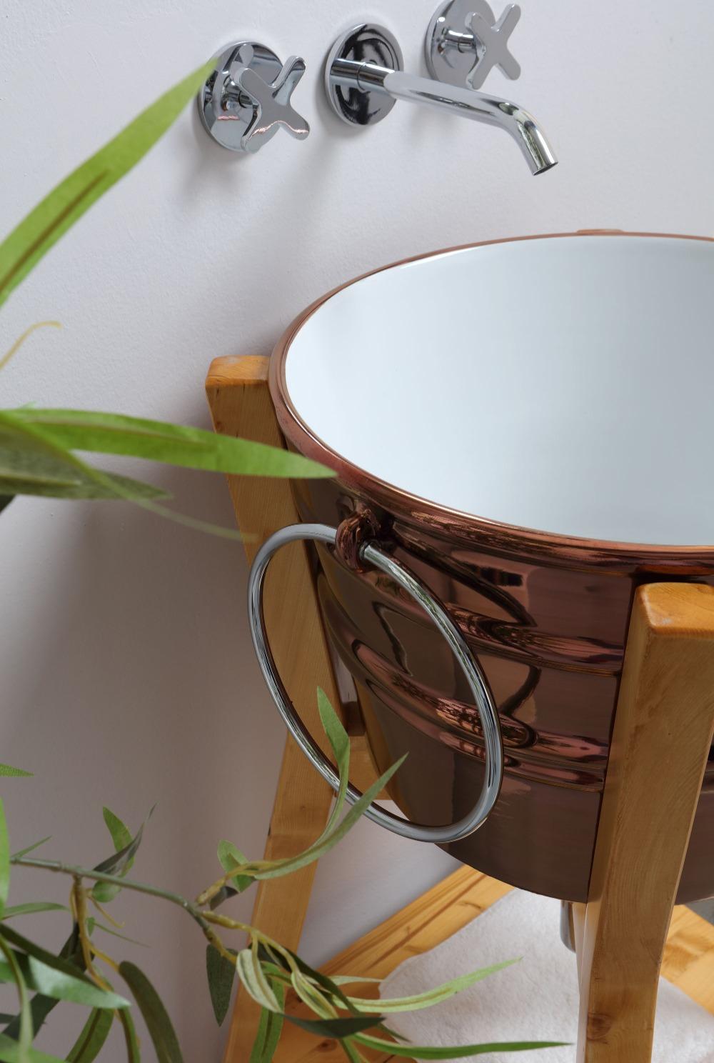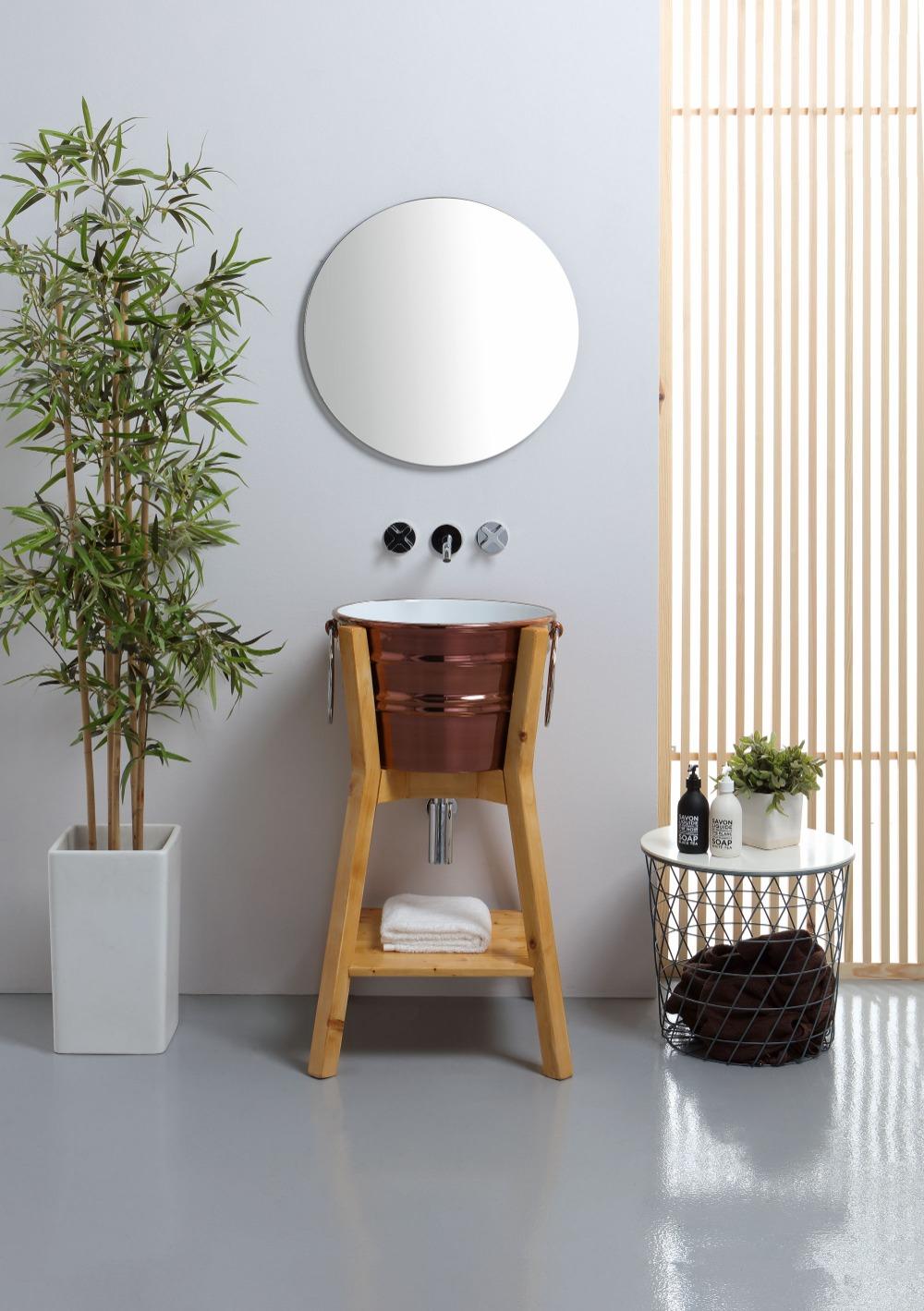 Waschbeckenstruktur aus Holz, bodenstehend, mit oder ohne Ablage, in 3 Ausführungen erhältlich, für Bacile-Waschbecken.