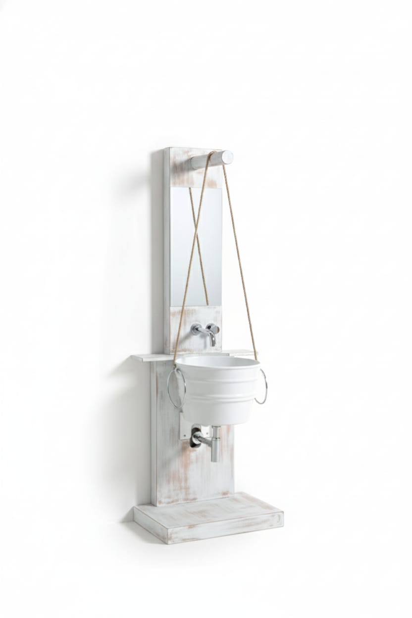 Holzstruktur, auf dem Boden, mit Spiegel mit oder ohne LED-Beleuchtung, erhältlich in 3 Ausführungen, für Bacile-Waschbecken mit Ringen.