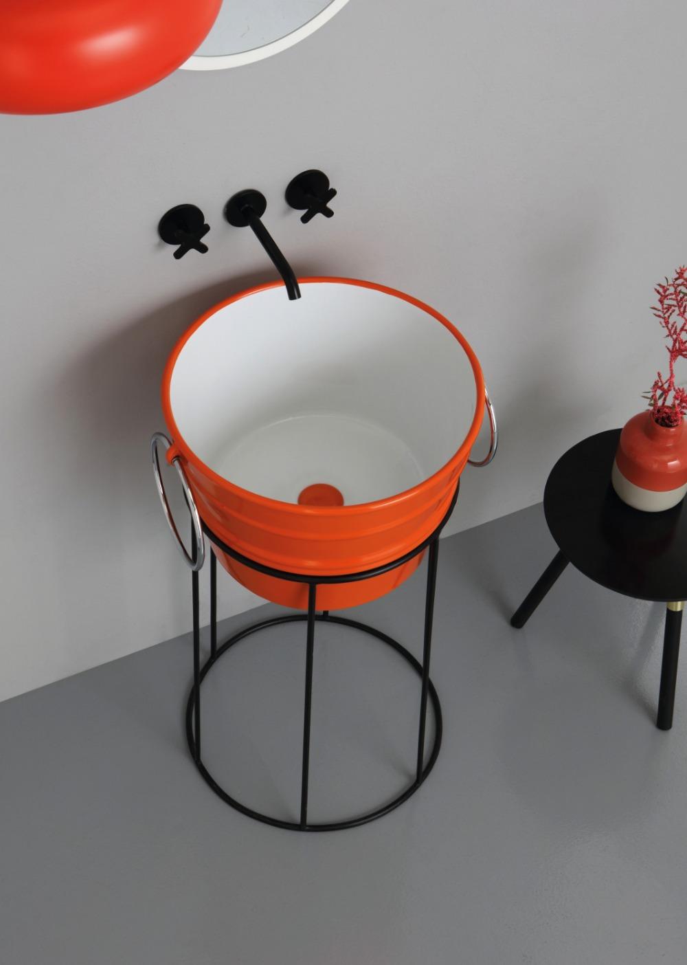 Metallstruktur für bodenstehendes Waschbecken, mit oder ohne Ablage, erhältlich in 2 Ausführungen, für Bacile-Waschbecken.