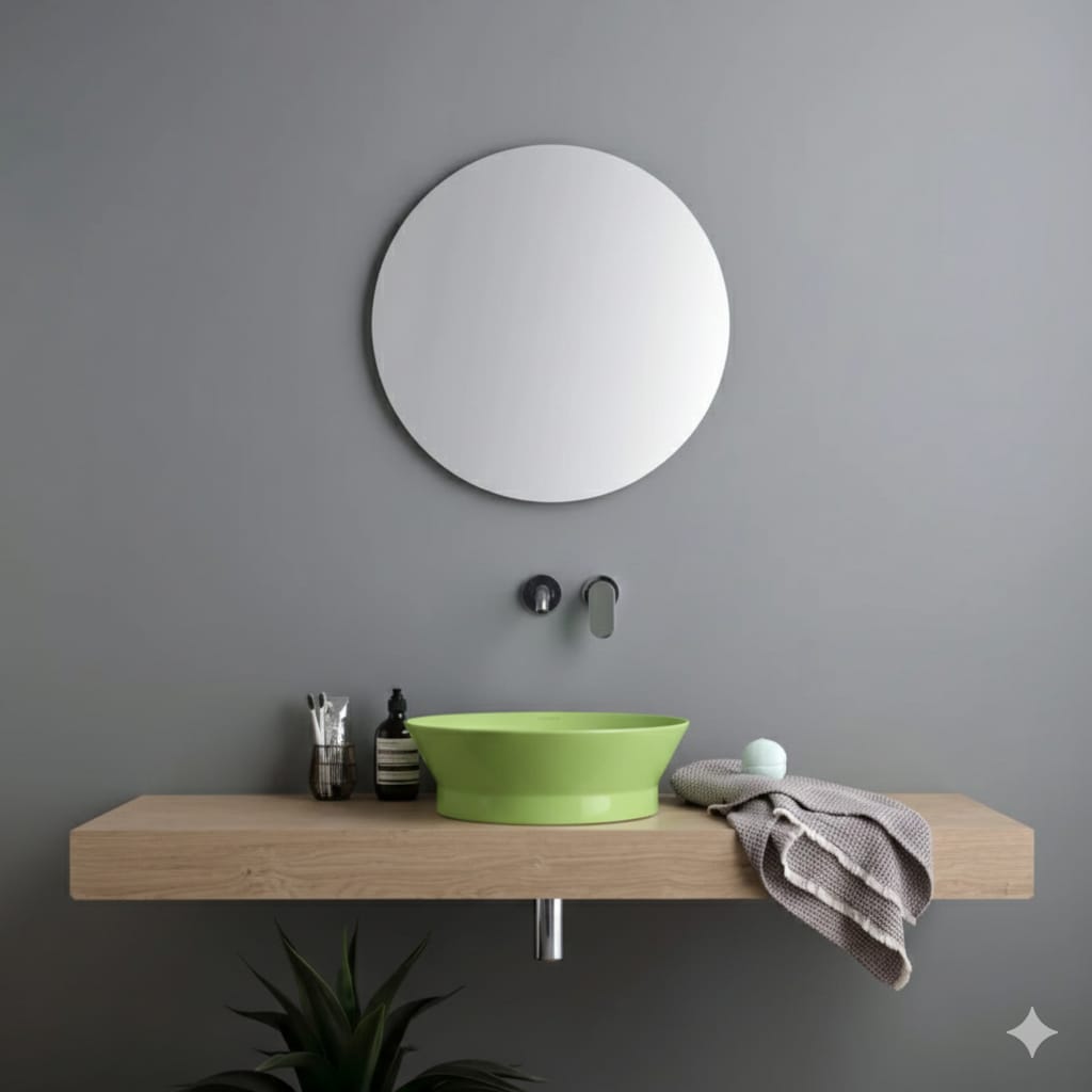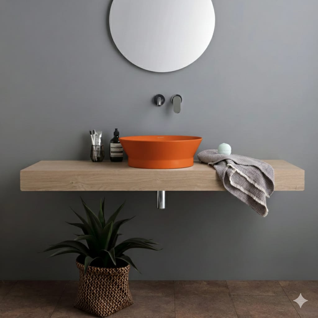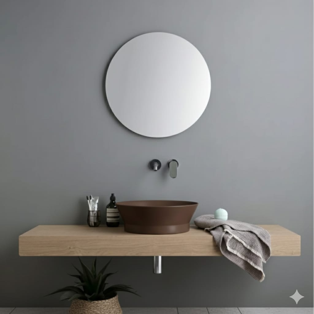 Lavabo d'appoggio, diametro esterno cm 45 x altezza cm 15. Piletta clip e clap e copripiletta in ceramica esclusi. Strutture e accessori esclusi.