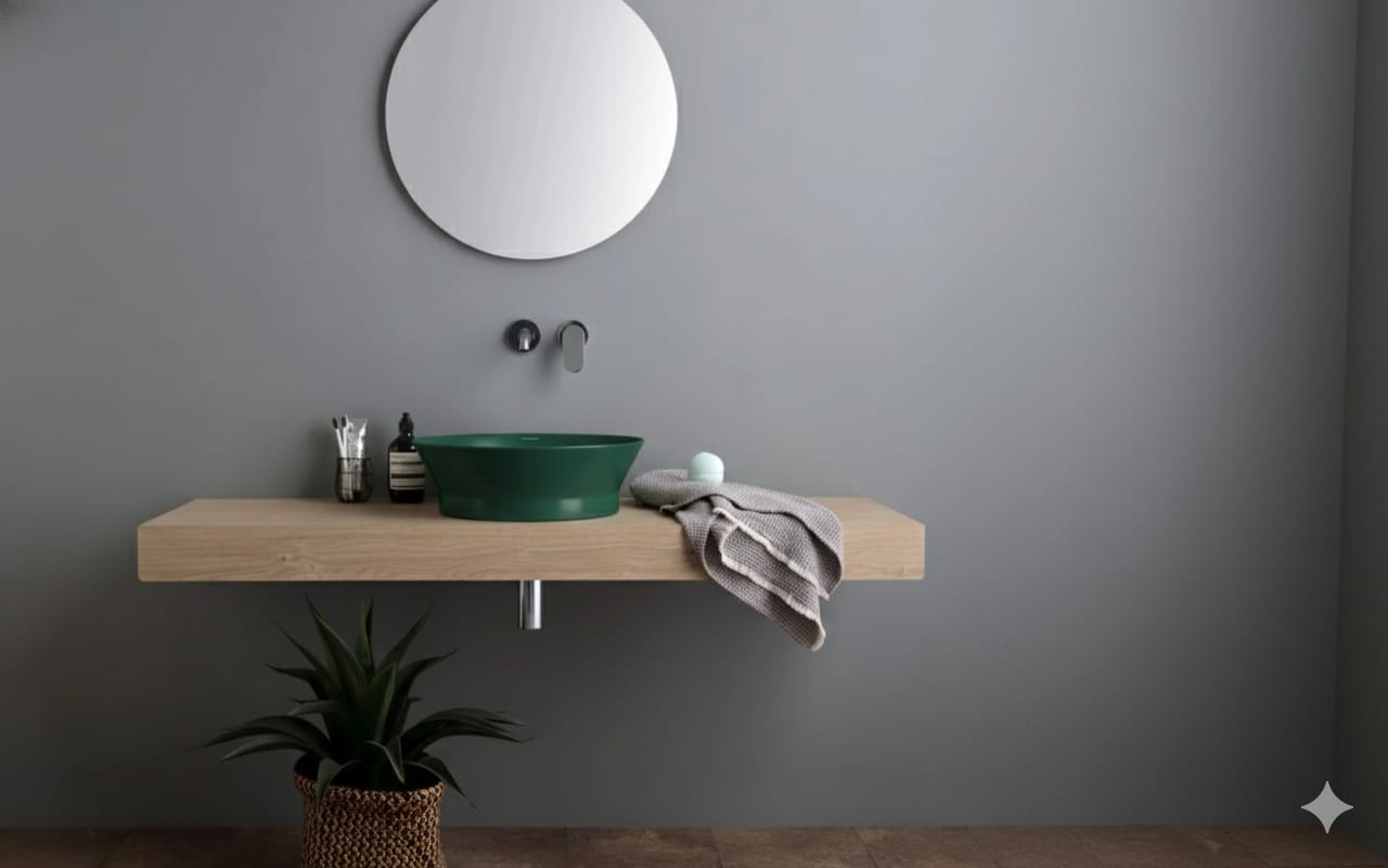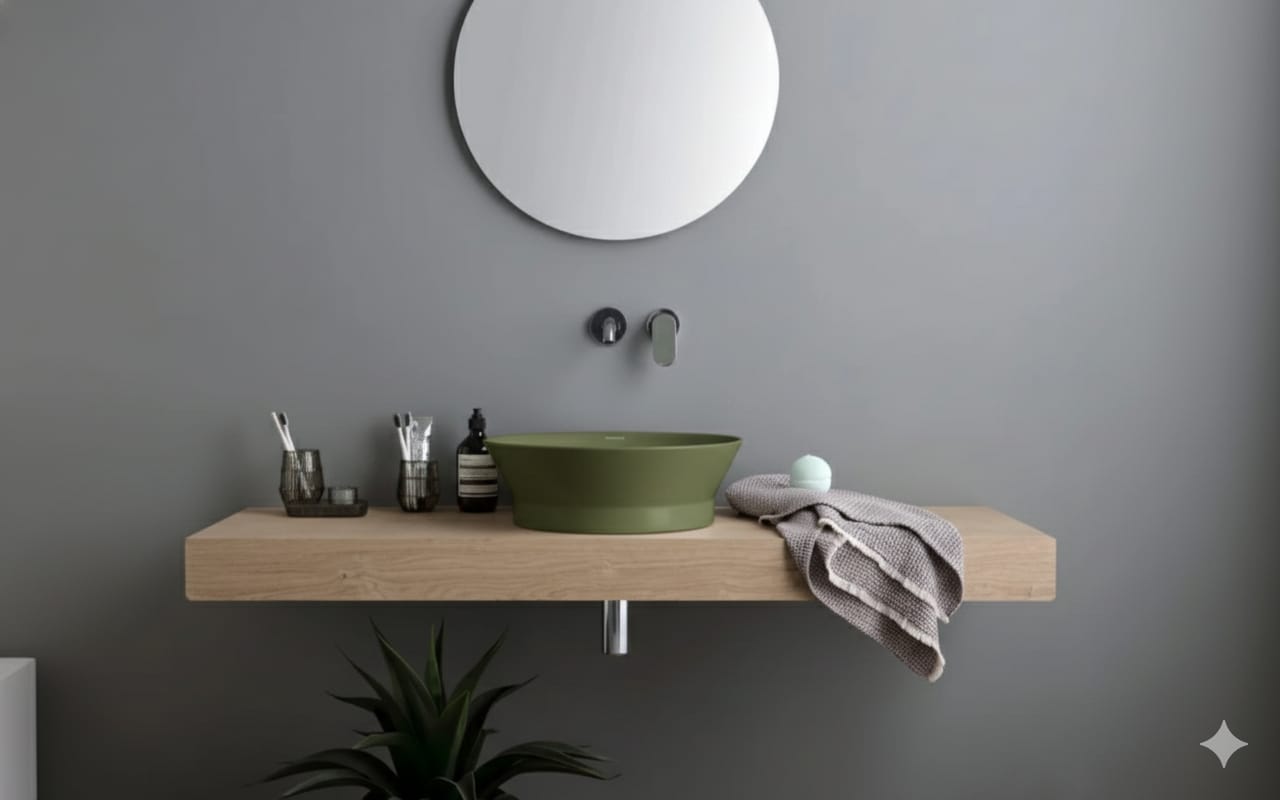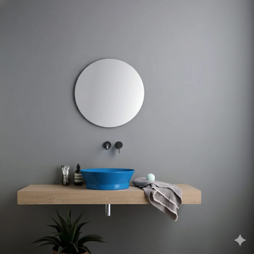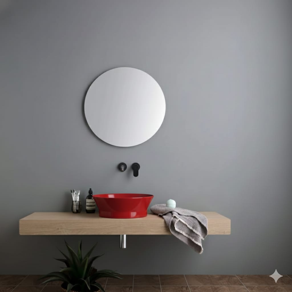 Lavabo d'appoggio, diametro esterno cm 45 x altezza cm 15. Piletta clip e clap e copripiletta in ceramica esclusi. Strutture e accessori esclusi.