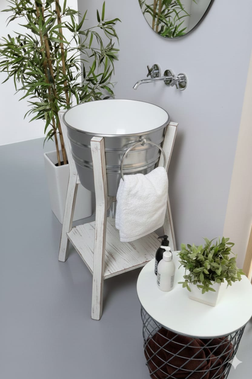 Struttura in legno portalavabo, a terra, con o senza ripiano, disponibile in 3 finiture, per lavabo Bacile Midi.